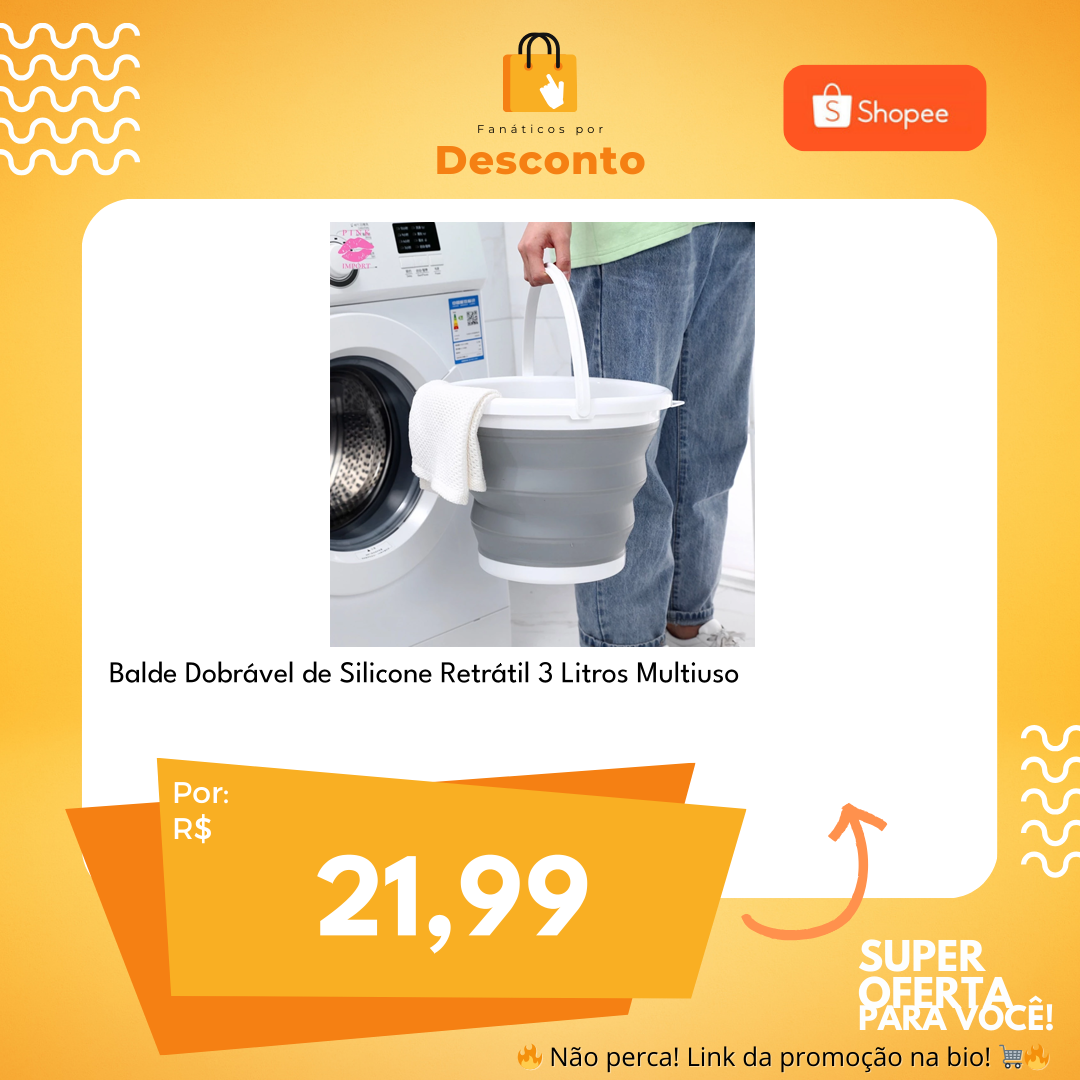 #balde #dobrável #silicone #retrátil #multiuso #prático #camping #piquenique #pesca #utilidade #durável #compacto #oferta #promoção #desconto #vibrante #moderno #facilidade #versatilidade #FanaticosPorDescontos