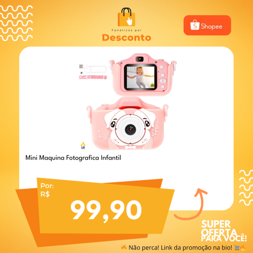 📸 Capture momentos mágicos com a Mini Máquina Fotográfica Infantil! Perfeita para os pequenos explorarem sua criatividade e registrar suas aventuras. Leve, colorida e fácil de usar, ideal para estimular a imaginação das crianças. 🌈👧👦 Não perca essa oferta especial e presenteie seu pequeno fotógrafo! #MiniMáquinaFotográfica